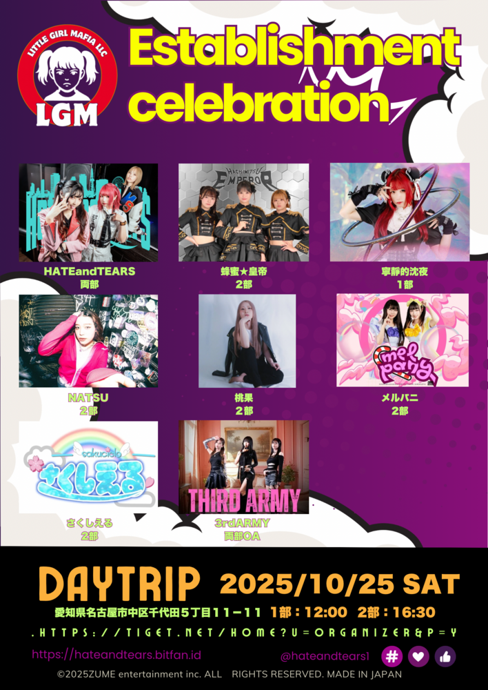 出演:HATEandTEARS/蜂蜜★皇帝/桃果(大阪)/NATSU(大阪)/さくしえる/メルパニ/3rdARMY